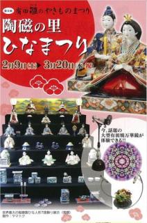 2月より開催している「有田雛のやきものまつり」ですが、まだまだ開催中です。有田館では世界最大の磁器製座りひな7段飾りを展示しており、その他町内には様々の焼き物のお雛様やひな祭りに関する商品も展示・販売...