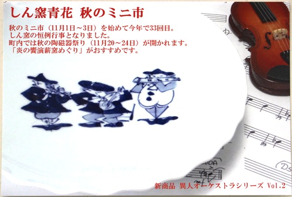 人気シリーズ 異人オーケストラや2015年干支皿などの秋の新作展をはじめ、