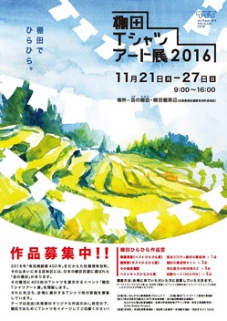有田焼創業400年を迎えた有田町の北西部に位置し、「日本の棚田百選」にも選ばれたほど美しい景観を誇る「岳の棚田」。その棚田に400枚のTシャツを展示するイベント「棚田Tシャツアート展 2016」が11月21日(月)より開催されるのに先立ち、展示するTシャツ用の原画を募集中です。