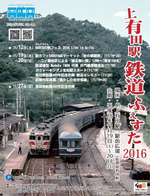 11月30日(水)まで開催中の「有田まちなかフェスティバル」のイベントで、11月19日(土)・20日(日)に「上有田駅 鉄道ふぇすた 2016」が開催されます。