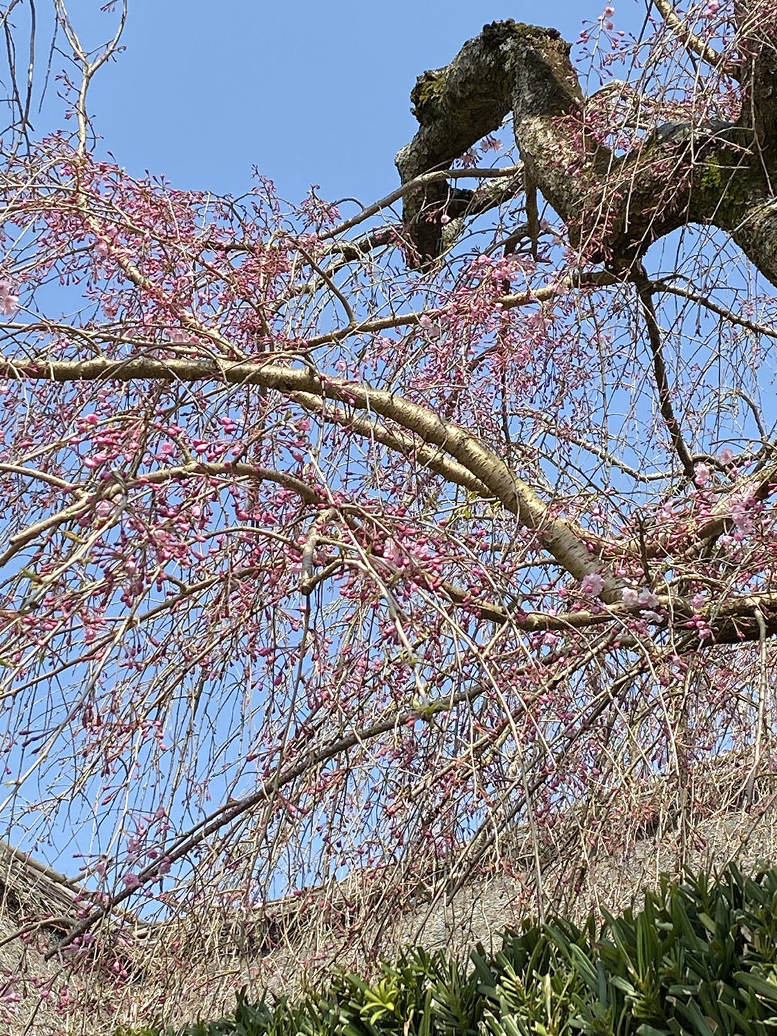 柿右衛門窯の歴史を見守り続けているしだれ桜がうっすらとピンク色になり始めました。