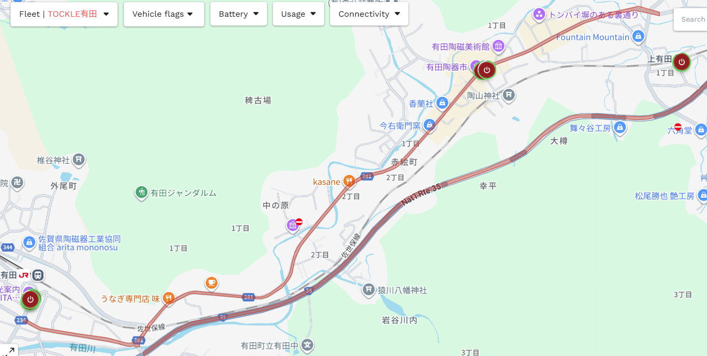 有田駅前交差点~泉山磁石場入口までの県道281号大木有田線が追加になります。