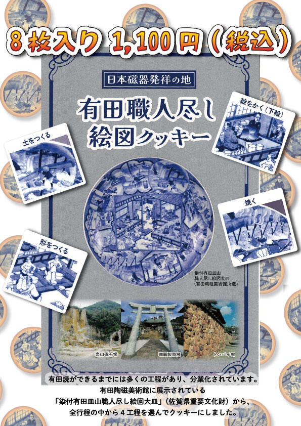 有田観光協会では「有田職人尽し絵図クッキー」を有田館(有田観光協会)にて販売します。