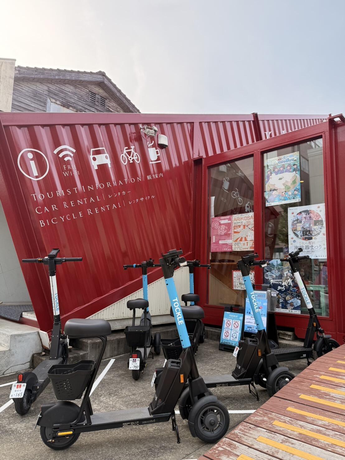 「キルンアリタ観光案内所」「有田館」「上有田駅」に設置中の電動キックボード「TOCKLE」は