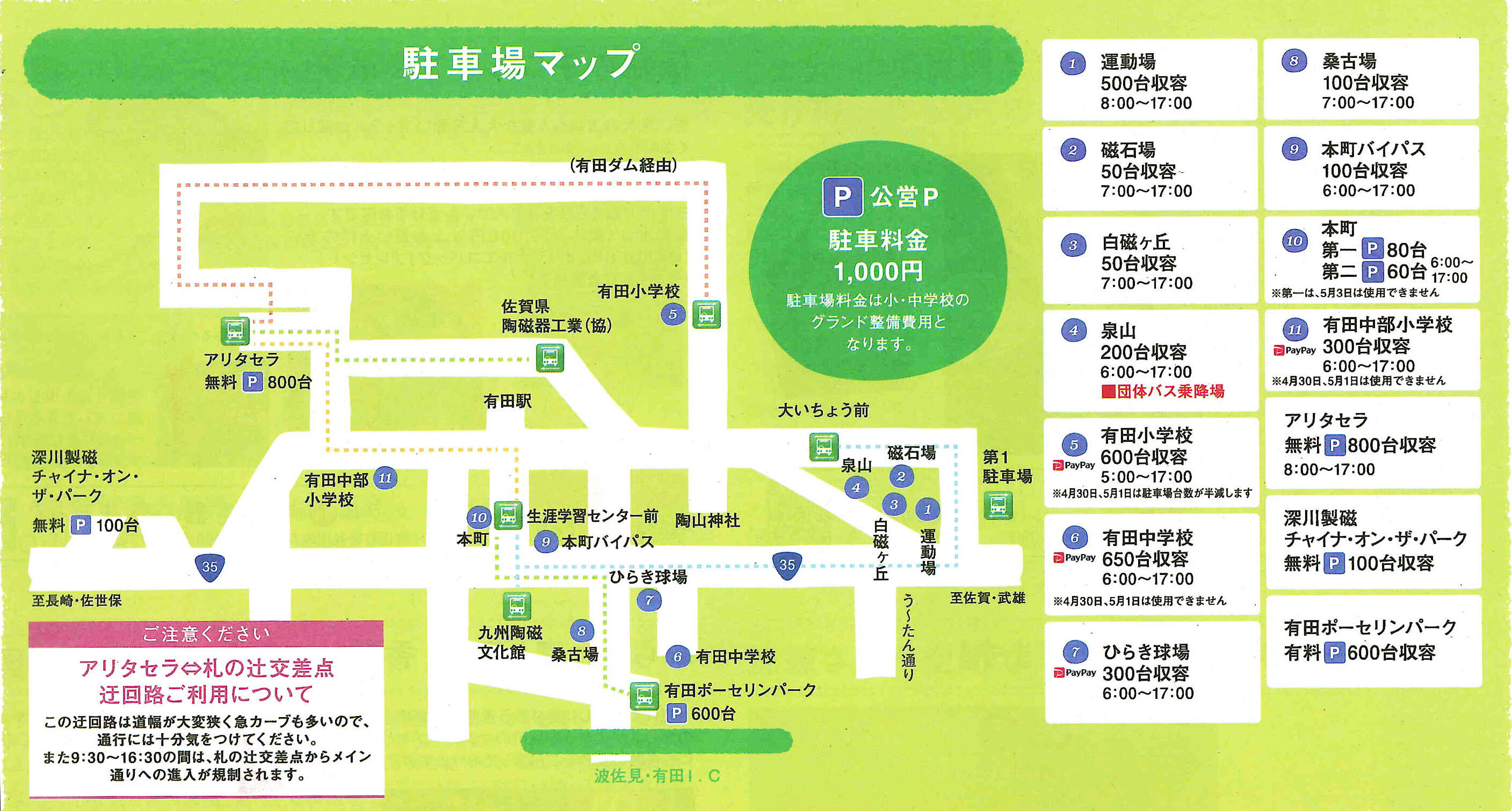 | 2026年 第122回 有田陶器市 公営駐車場一覧 | |||