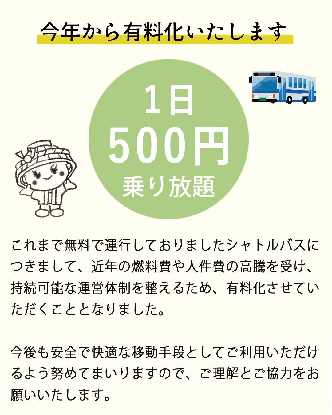 乗車料は1日500円で乗り放題です。(小学生以下無料です)