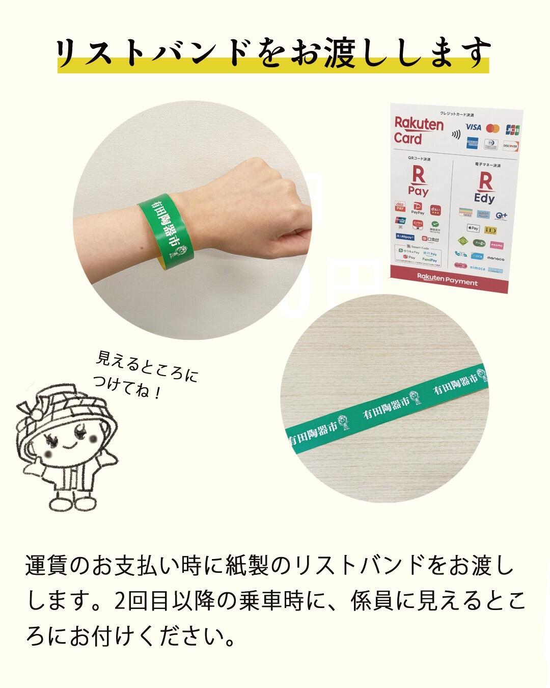 紙製のリストバンドをお渡しします。2回目以降の乗車時に係員に見えるところにお付けください。