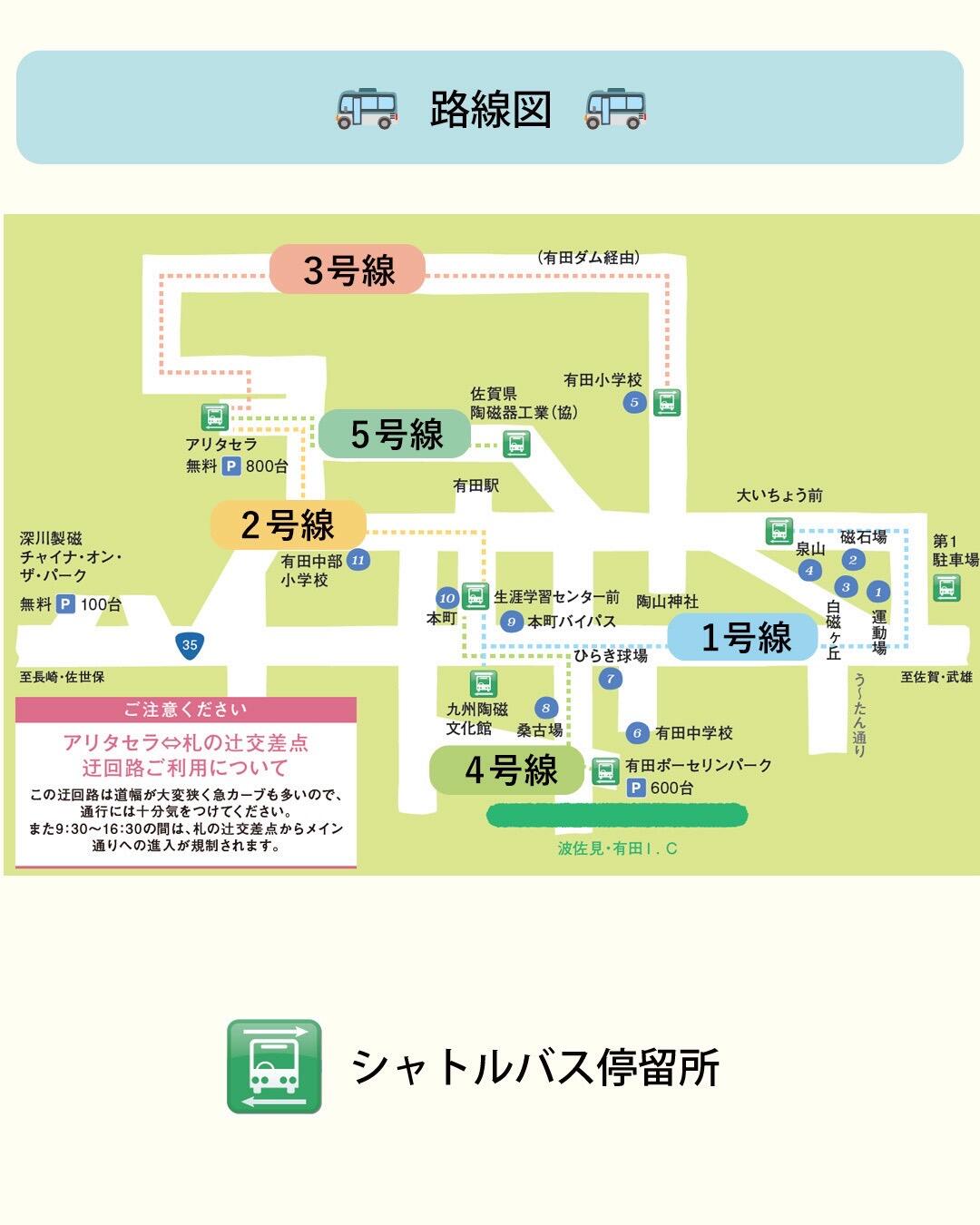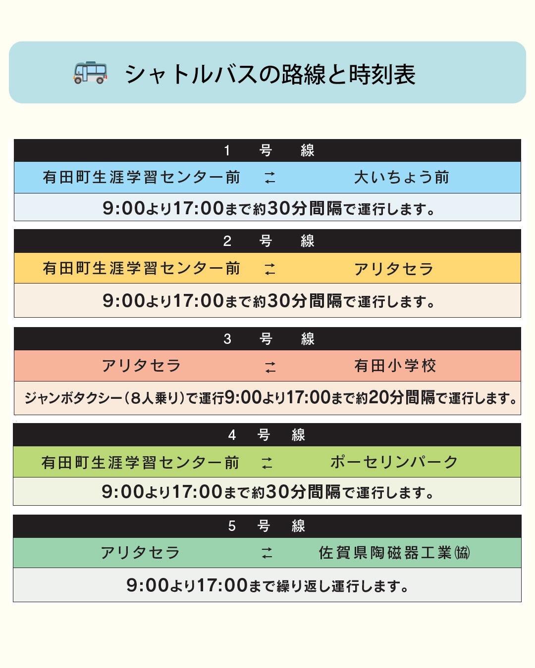 アリタセラ⇔佐賀県陶磁器工業協同組合9:00~17:00まで繰り返し運行します。