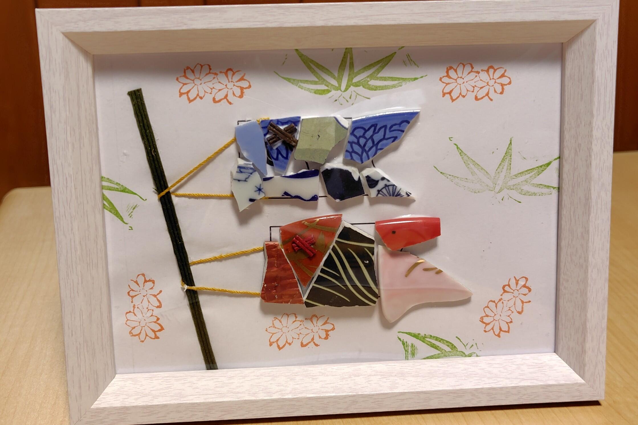 有田焼の陶片を使い、こいのぼりのミニボードを制作する親子で楽しめるワークショップを