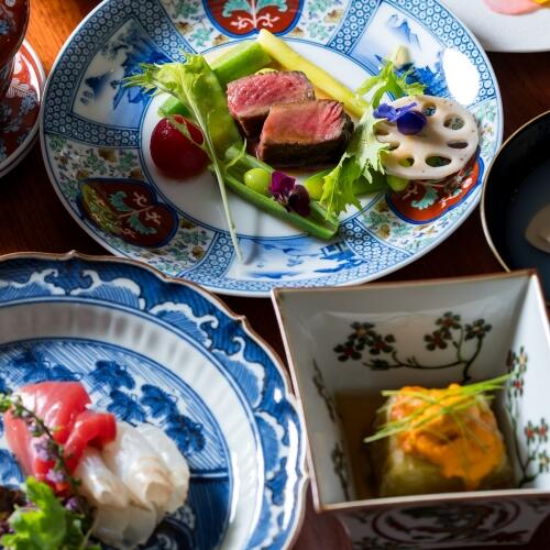 近海で捕れた活きの良い魚、肉は佐賀牛の最高級A5等、 新鮮な野菜は県内外の農家から。 素材は全て宿主が厳選した旬の最高の食材。 それらを老舗日本料理・ 保名三代目西山保徳が 一丁ひと箸心を込めて調理した目福口福の料理を併設の「ダイニング瑞」にてご提供いたします。